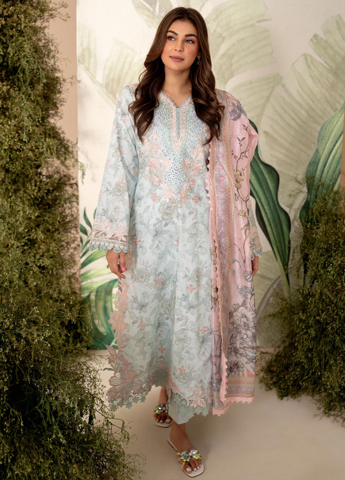 CHIKAN KARI EMBROIDERED PRINTED SLEEVES