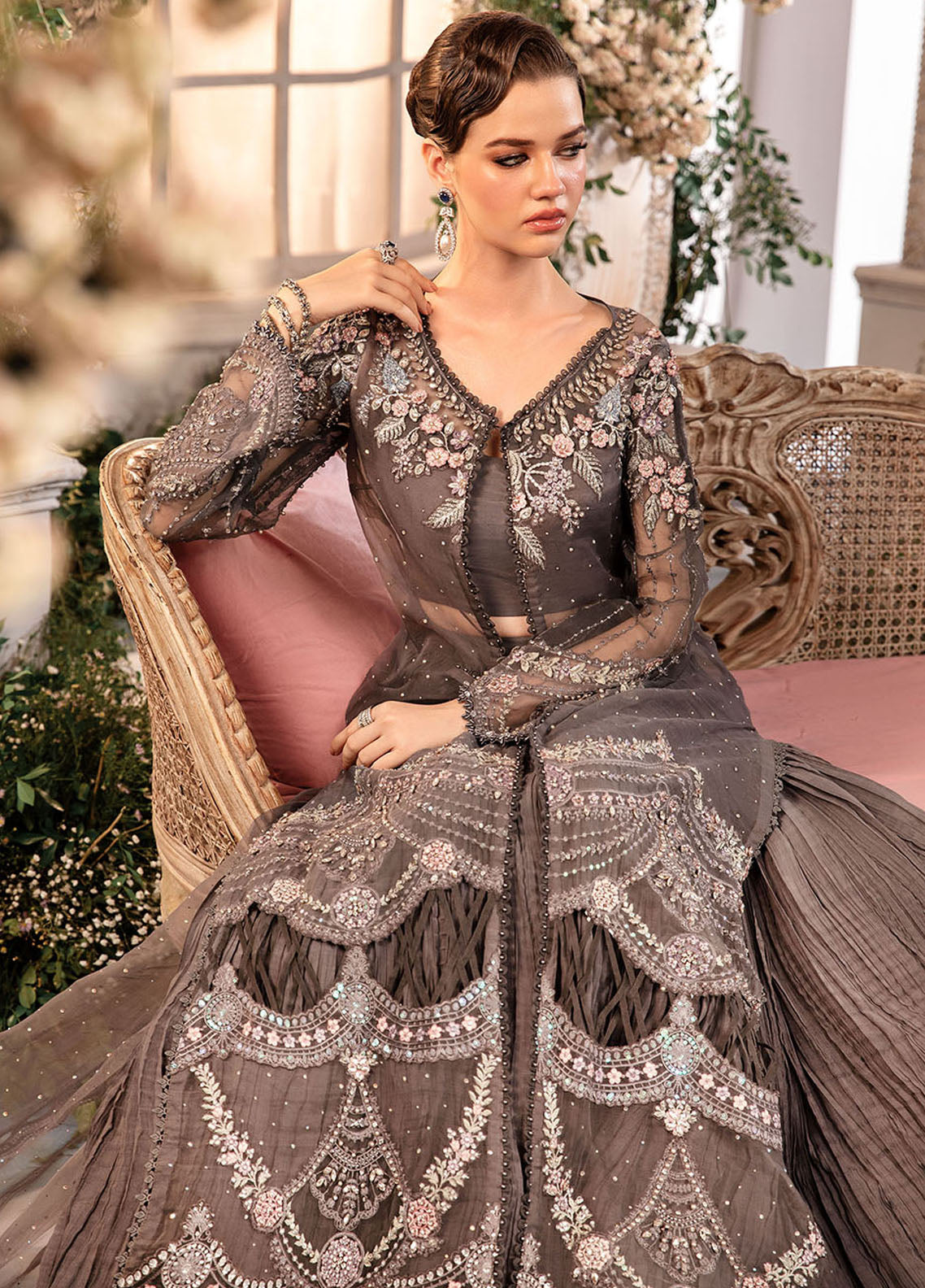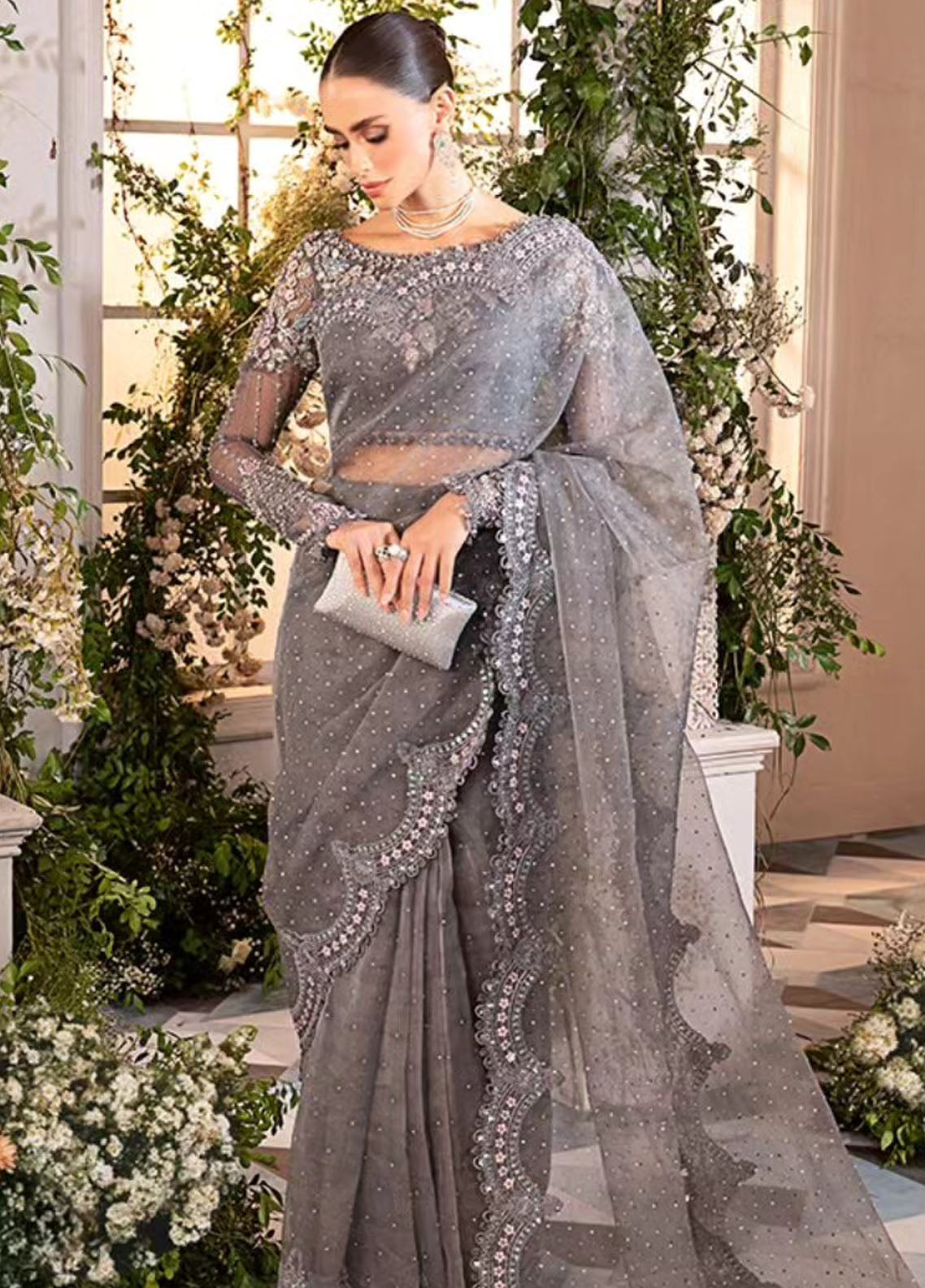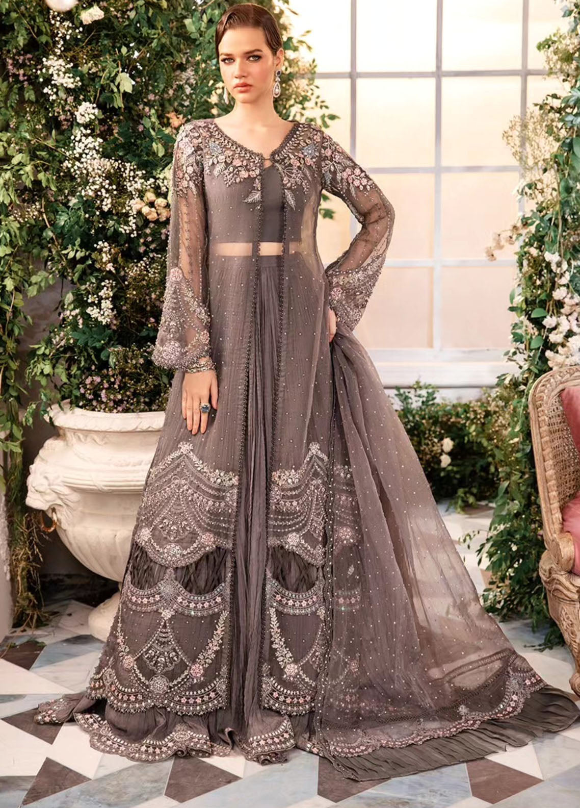 Embroidered Organza Sleeves Jal With Luxury Hand Embellishment