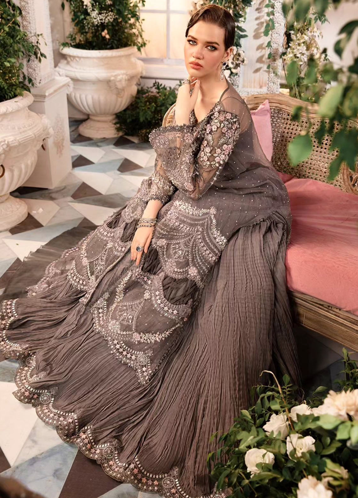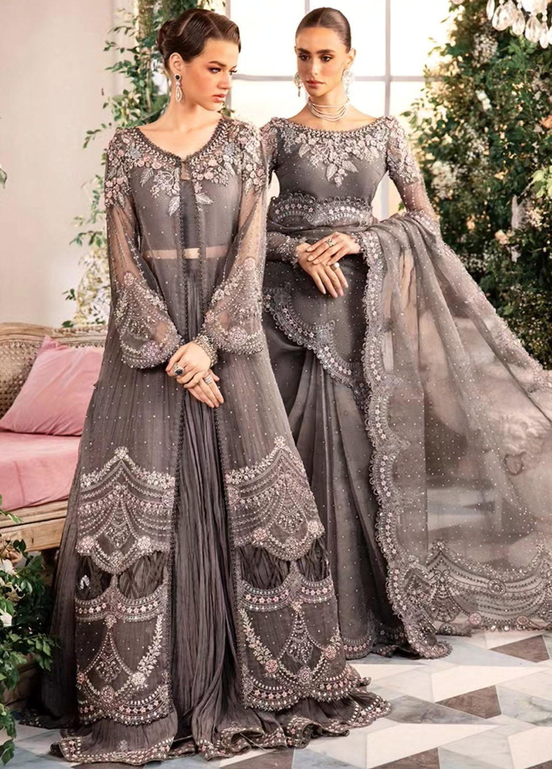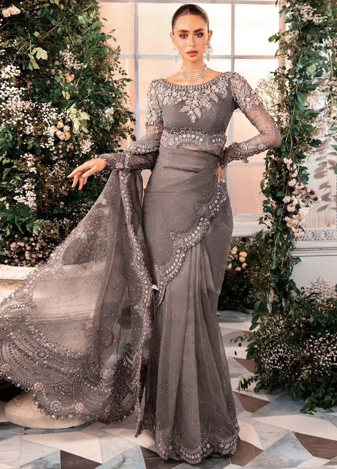 Embroidered Organza Sleeves Jal With Luxury Hand Embellishment