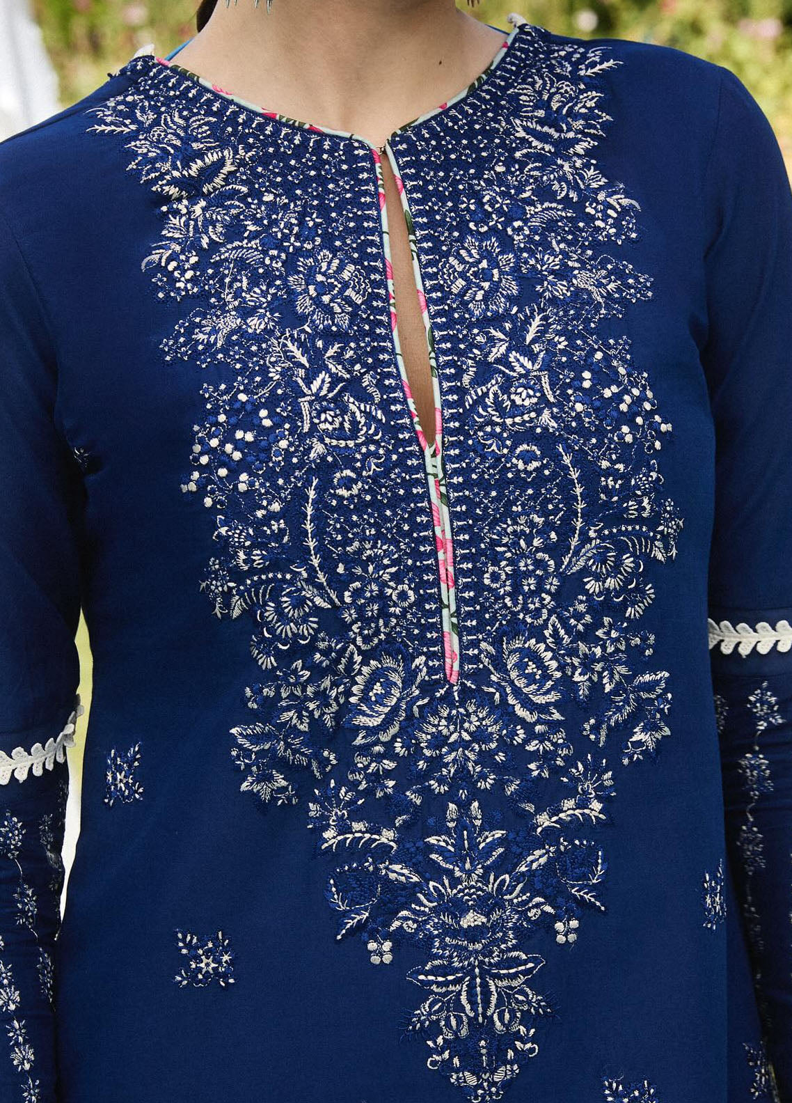 The stunning blue outfit highlighted with intricate white and blue embroidered details with digital printed floral and fun dupatta. Completing the outfit with the same colour pants.