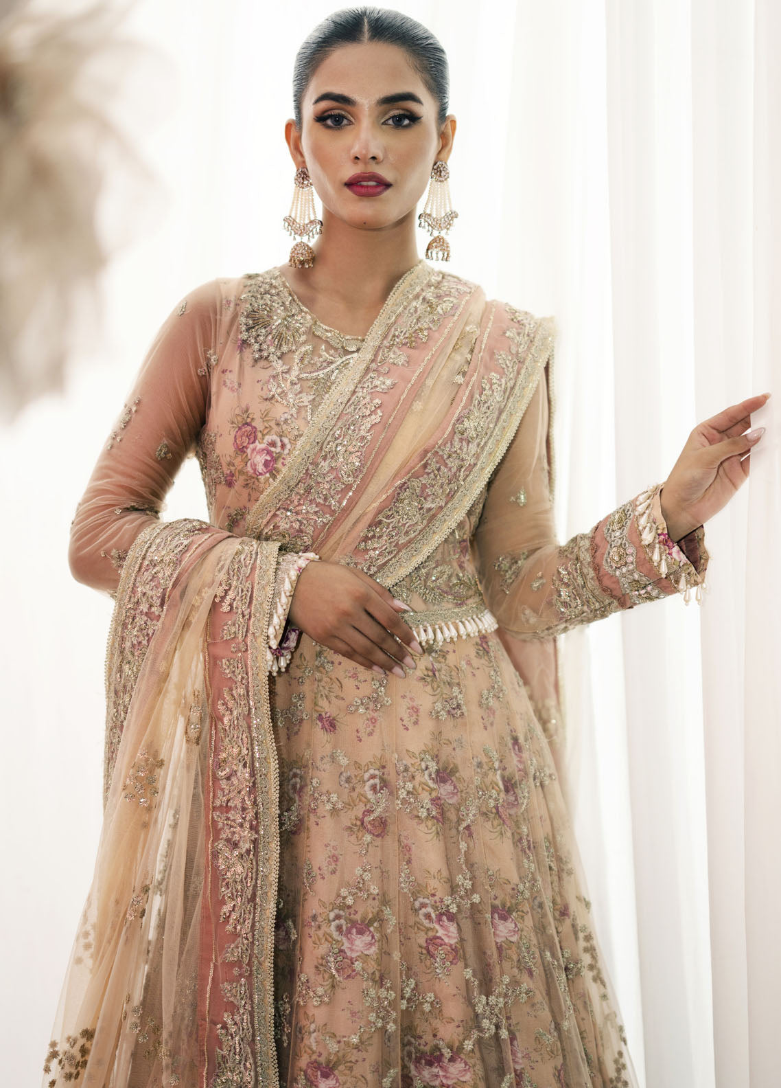 Resham and sequin embroidered net sleeves