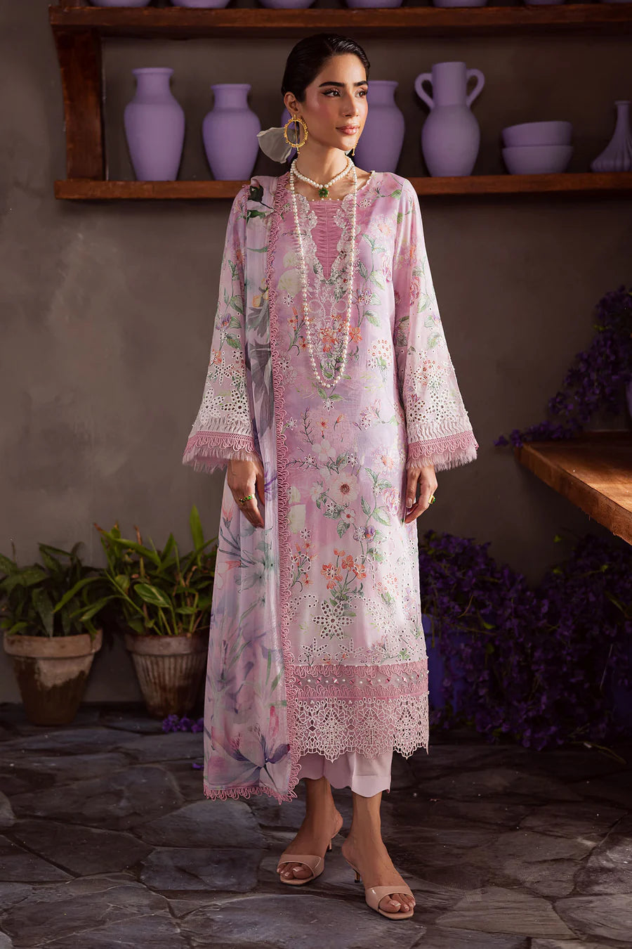 • Printed Lawn Shirt With Chikankari Lace Neckline