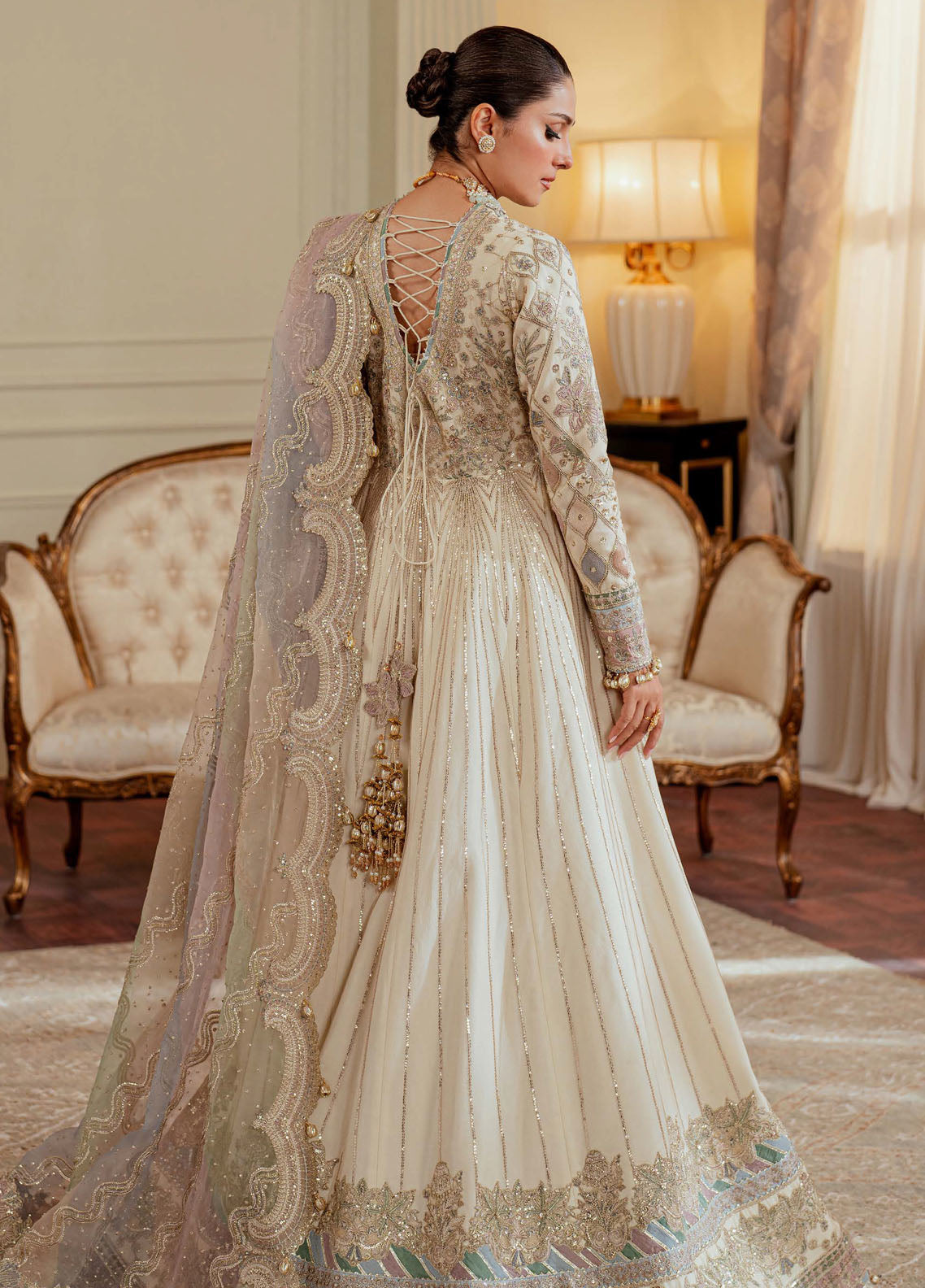 Embroidered organza dupatta border (8.5 yards)