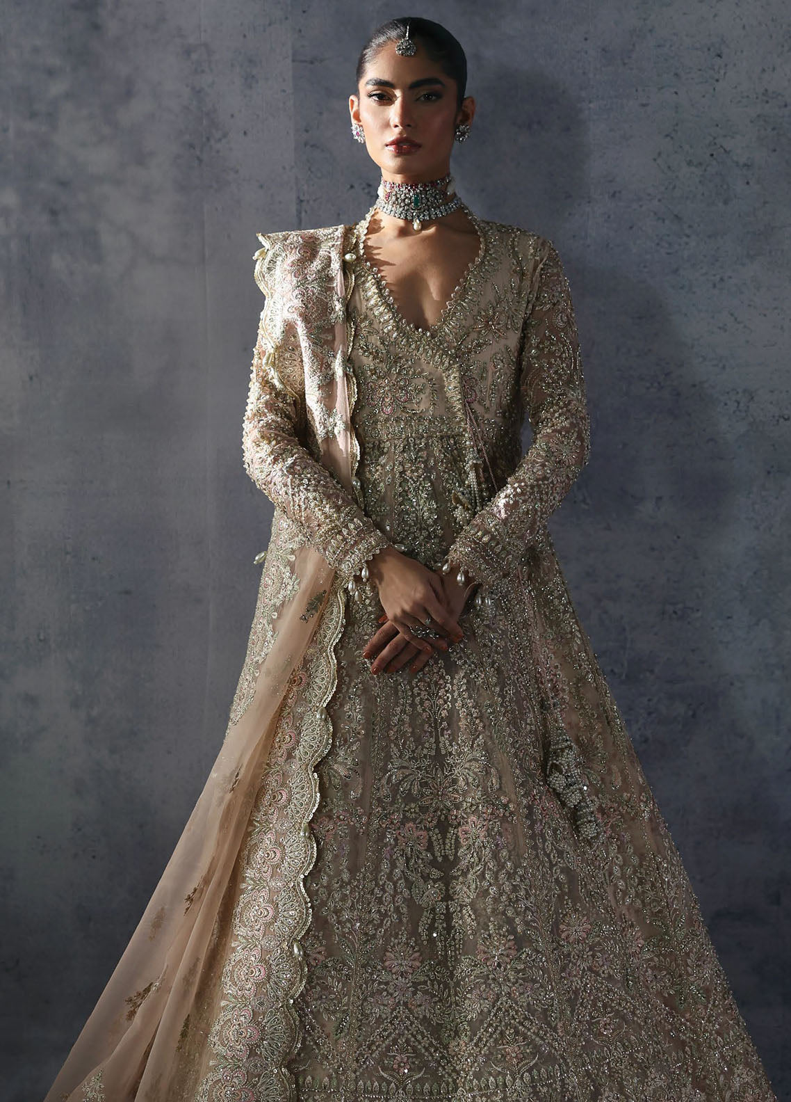 ORGANZA HAND EMBELLISHED EMBROIDERED FRONT BODY (L+R) (2 PCS)
