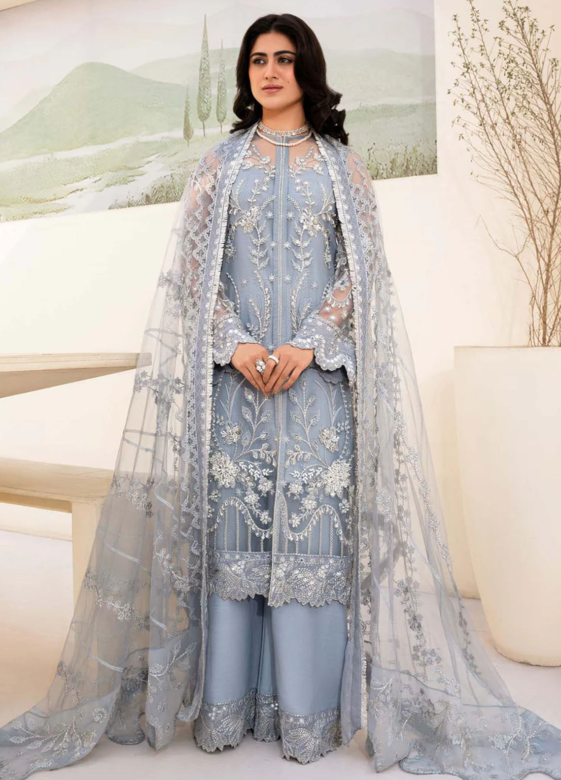 - Embroidered Dupatta Pallu On Net 2 Pieces
