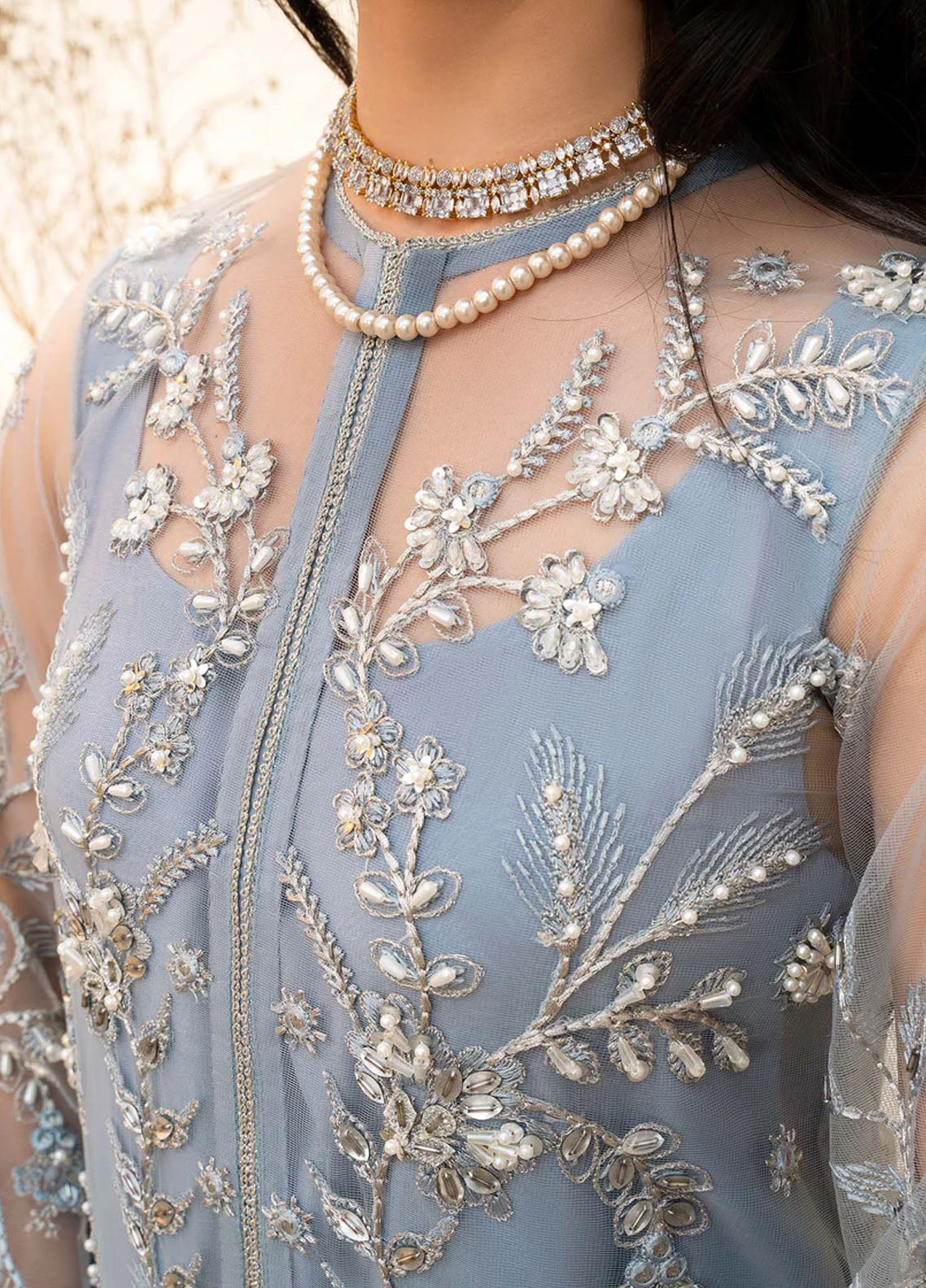 - Hand Embellished Sleeves On Net 0.66 Meter