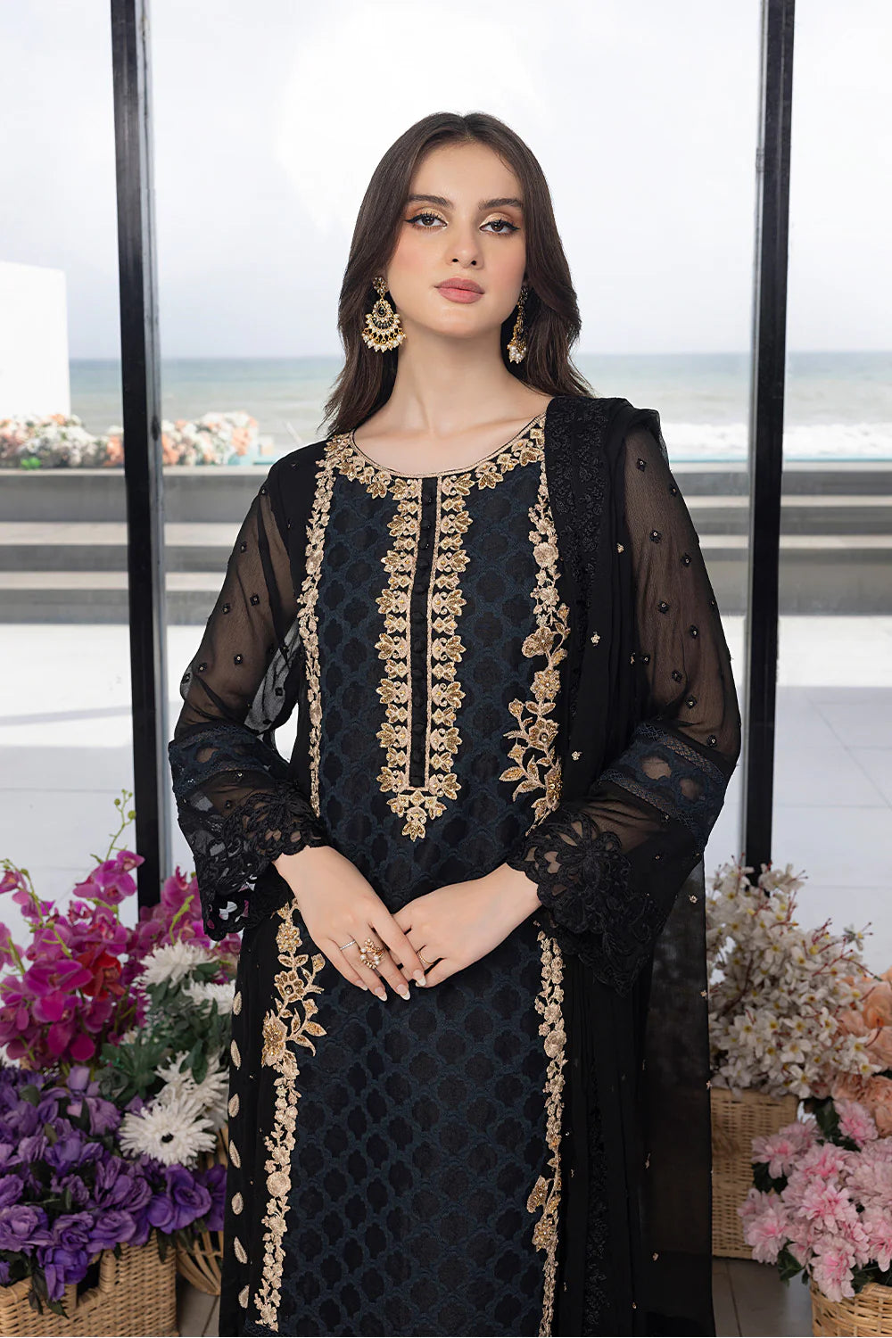 - Sequins Embroidered Chiffon Dupatta: 2.5 yards