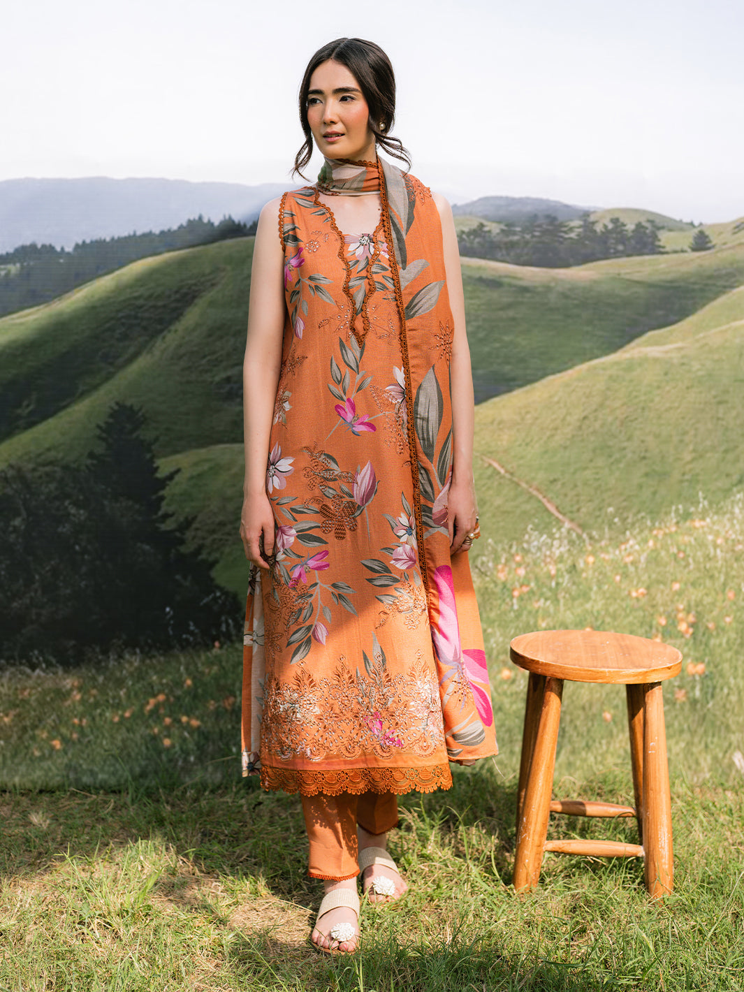 Embroidered Printed Karandi Front