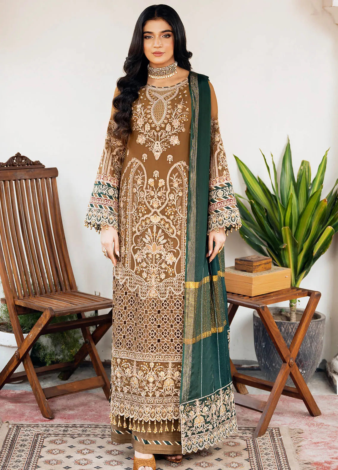 Embroidered zarri jacquard for dupatta