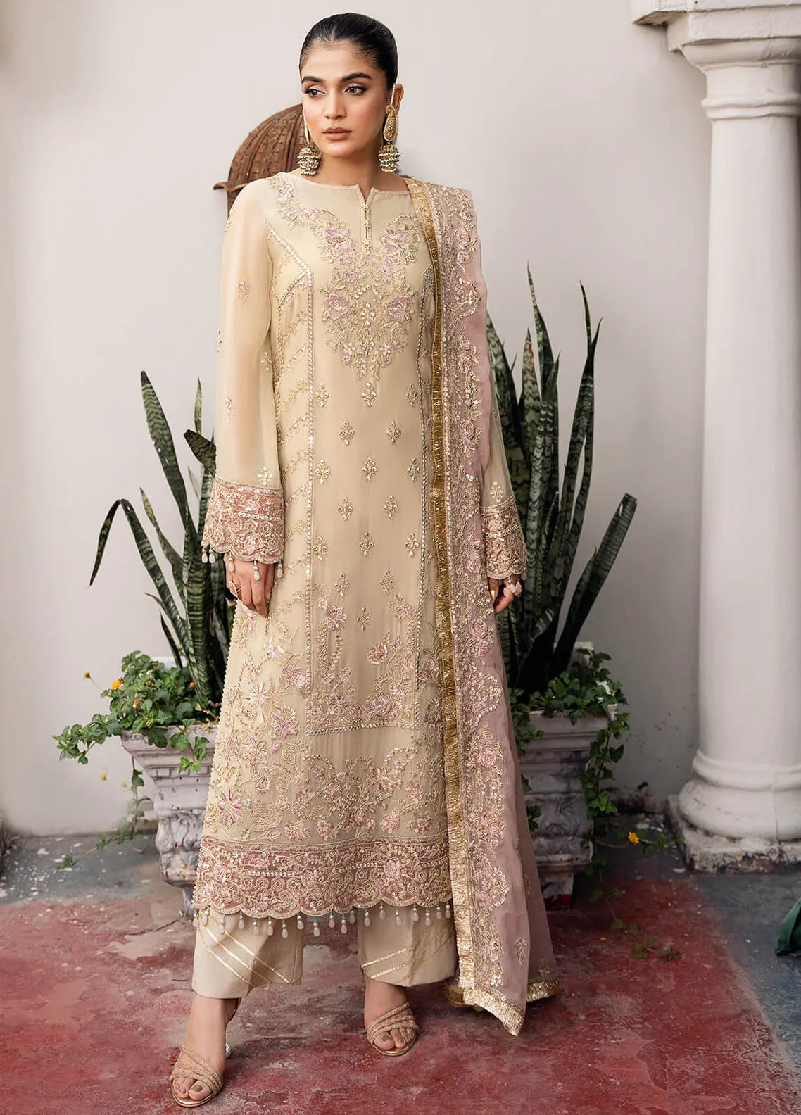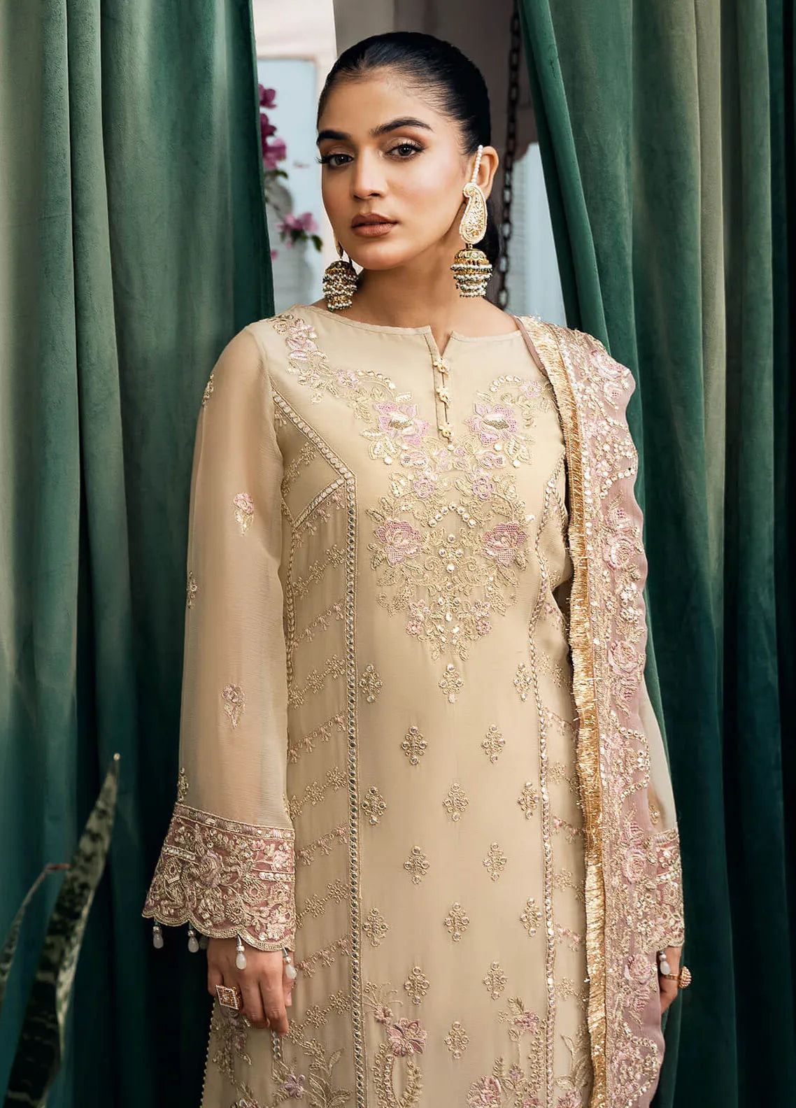 Embroidered chiffon for dupatta