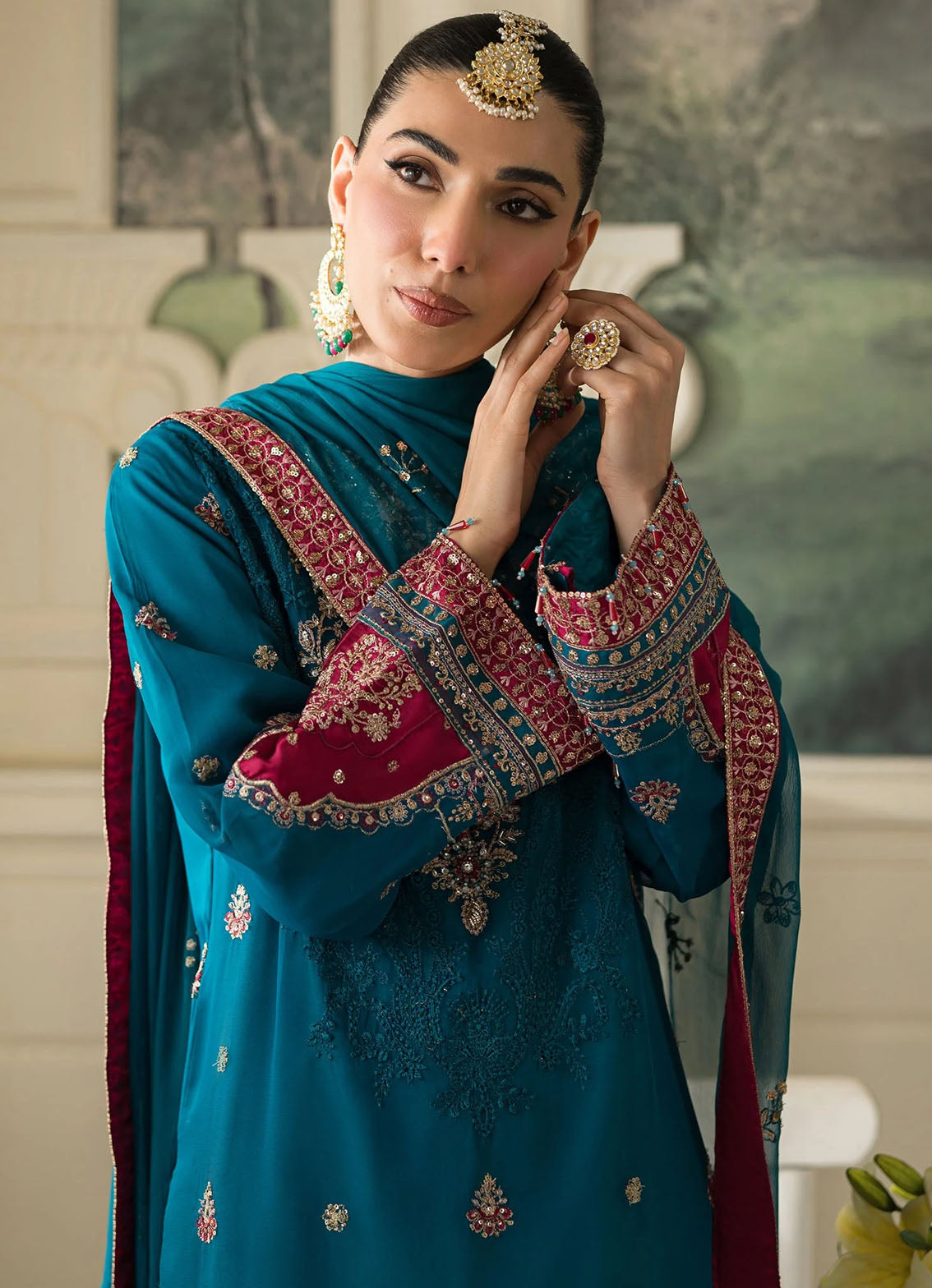 Chiffon Embroidered Sleeves.