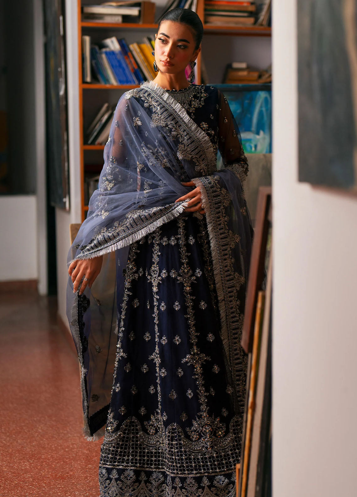Embroidered Dupatta on Net with 4 side Borders on Organza (2.5Mtr)