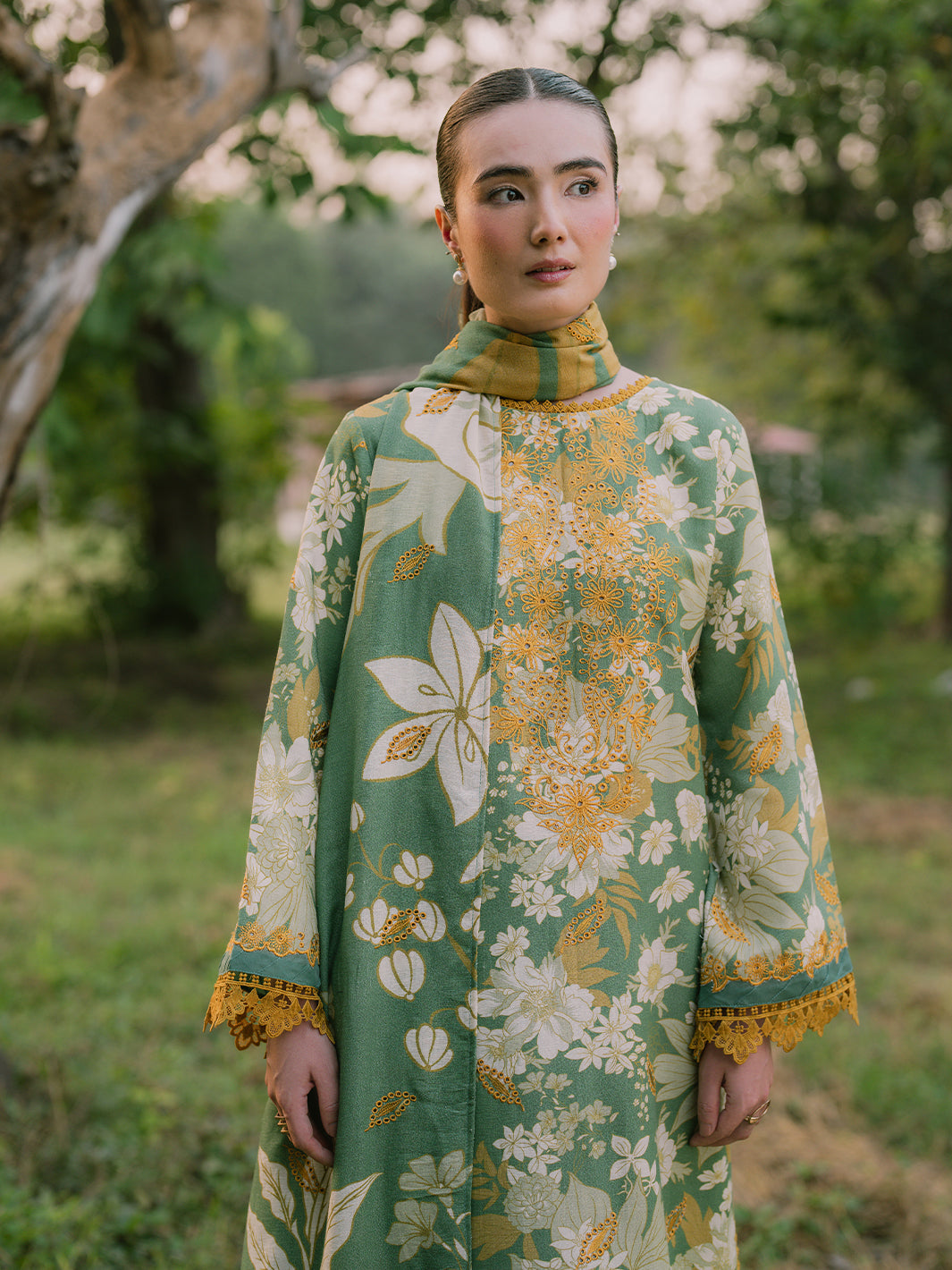 Embroidered Printed Karandi Sleeves