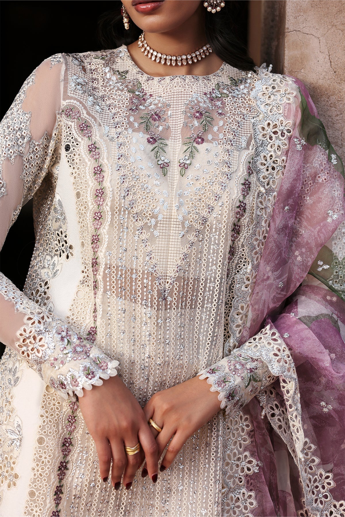 OFF WHITE ORGANZA LAZER EMBROIDERED FRONT PANEL B 1 PC