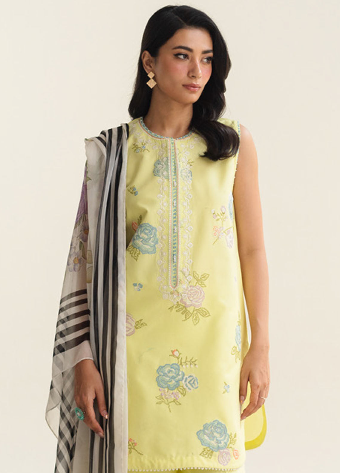 Embroidered Organza Neckline 1 Pc