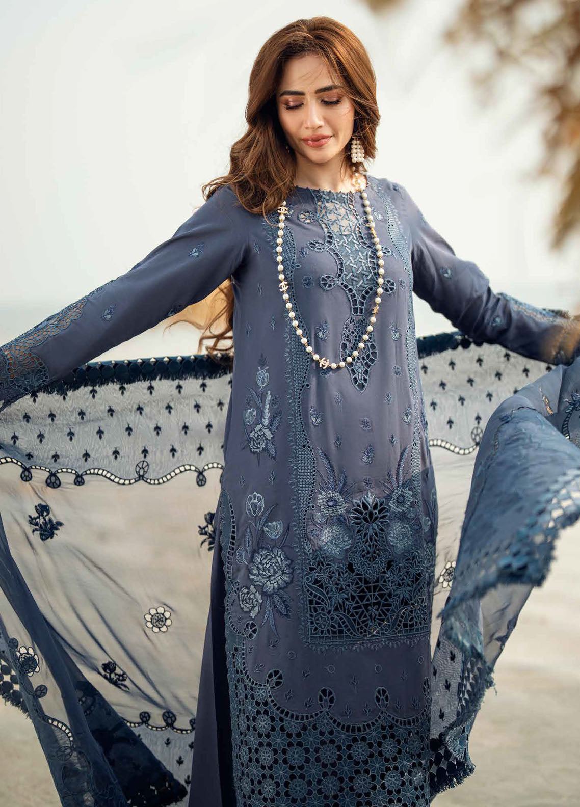 - Embroidered Chikankari Swiss Voil Lawn Shirt