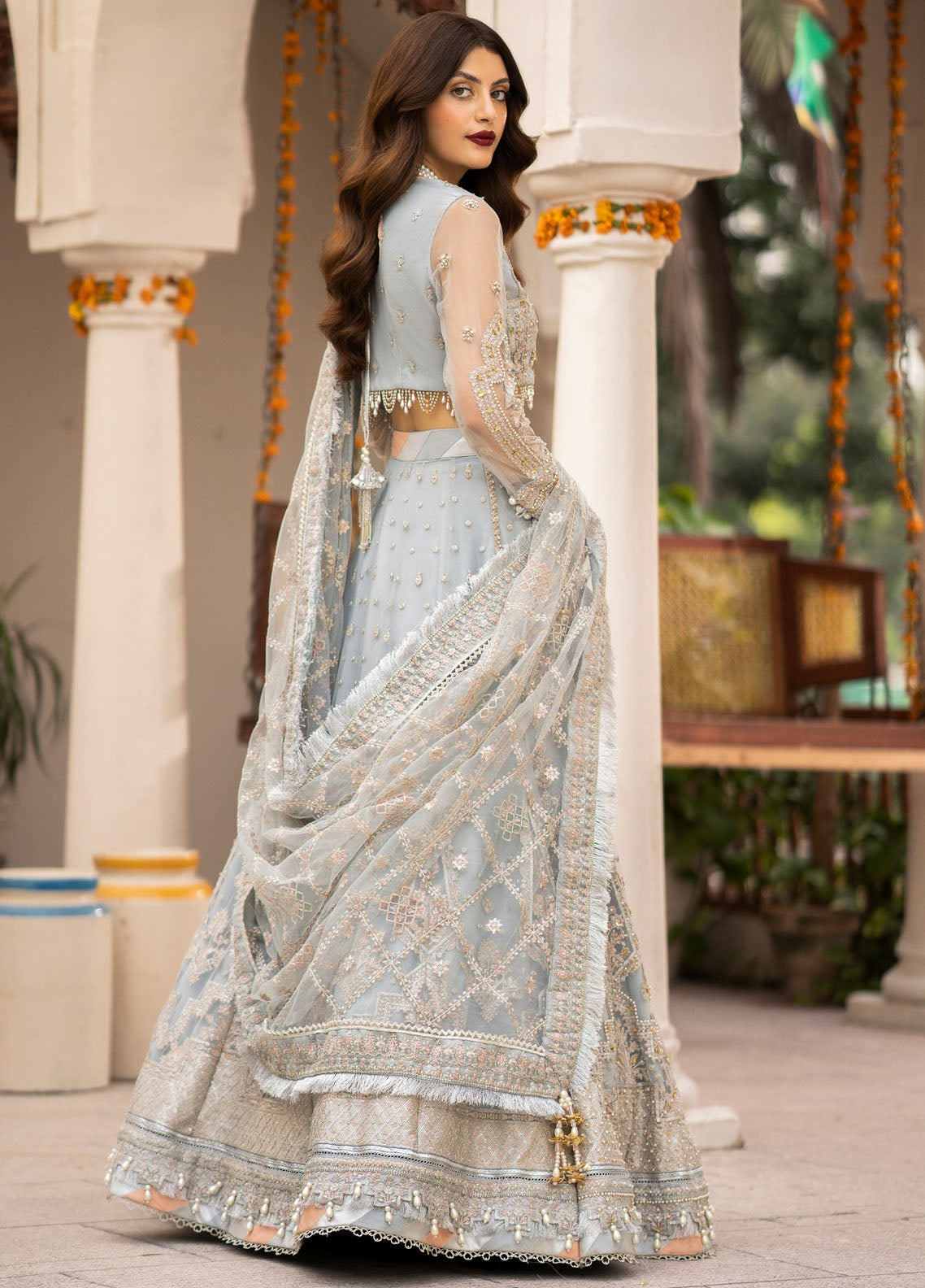 Embroidered Front Kali with Hand Embellishment on Net (6 Kali)