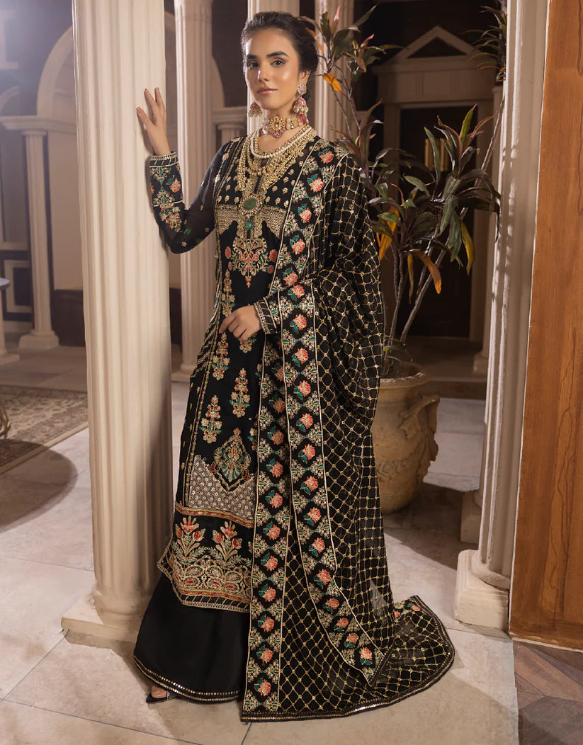 Sequin Embroidered Chiffon Side Kali – 3 Pc