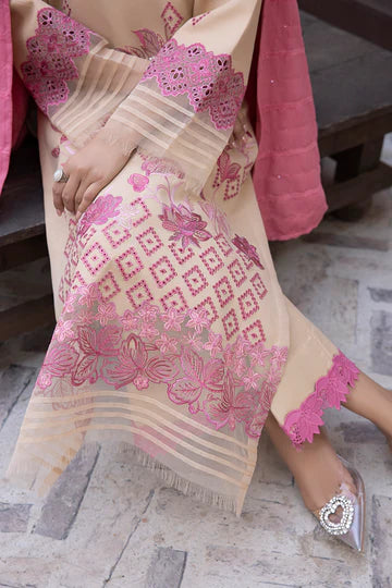 Embroidered shirt sleeve border on dyed organza 40 inch