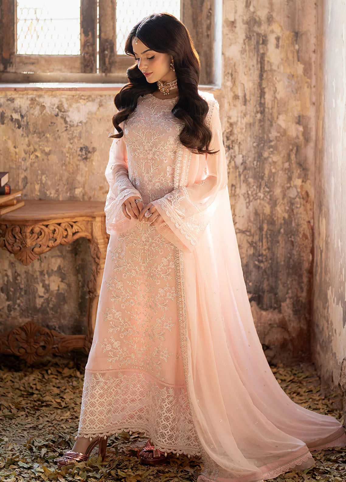 Sequins Embroidered Chiffon Dupatta: 2.5 yards