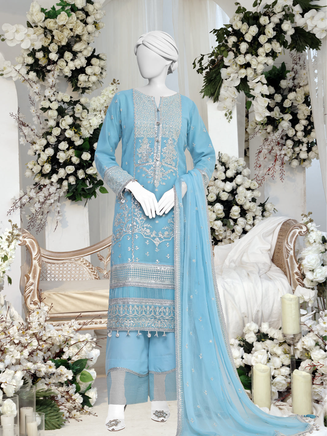 2.5 Meters Embroidered Dupatta On Chiffon With 4 Side Borders