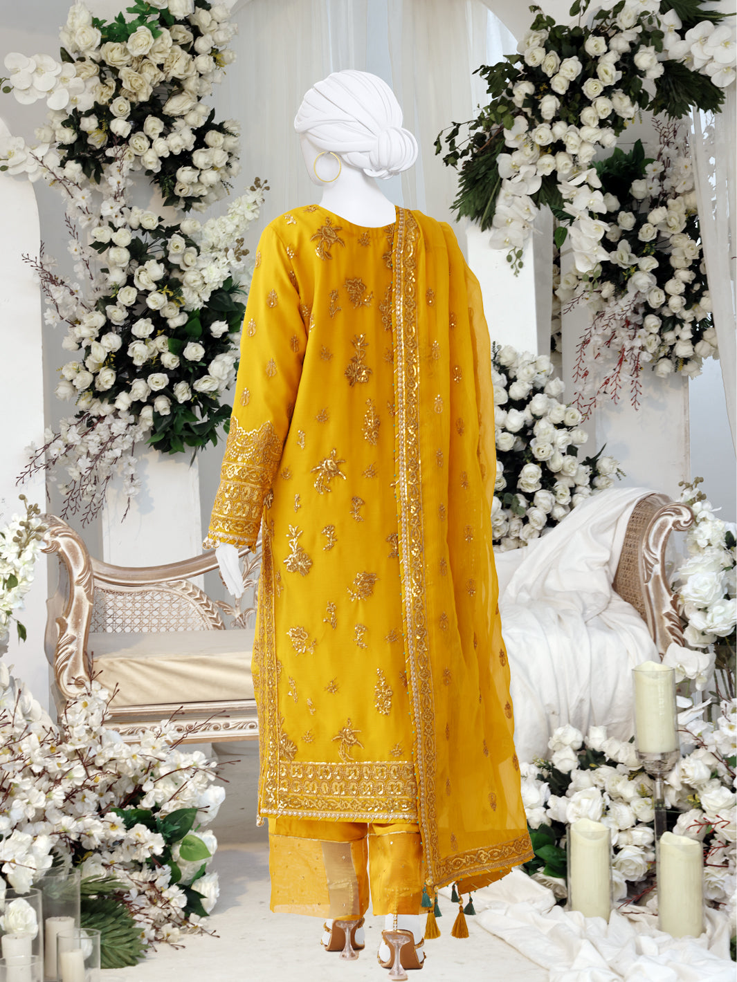 Embroidered Border For Back Daman On Chiffon