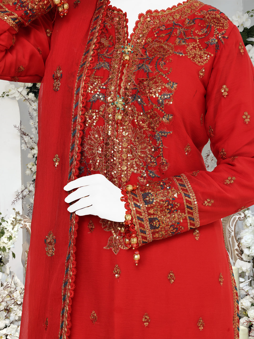 2.5 Meters Embroidered Dupatta On Chiffon With 4 Side Borders