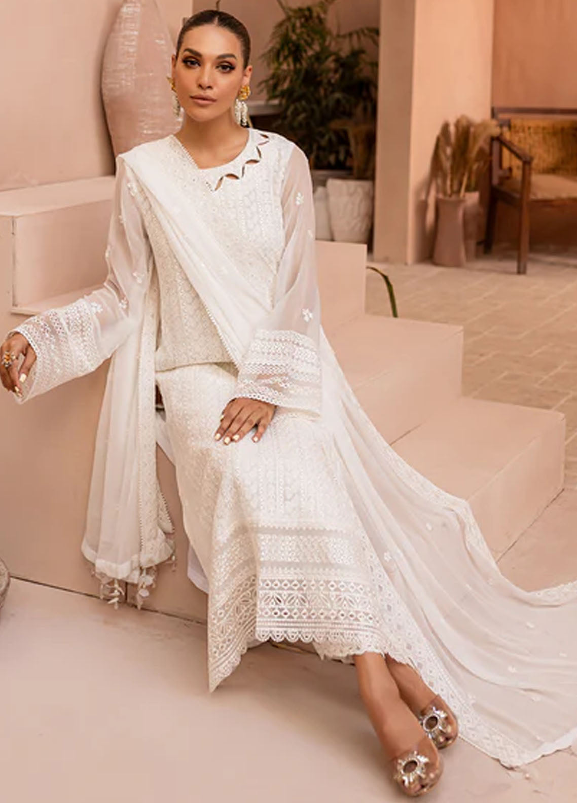 Introducing Royal Allure – a stunning embroidered chiffon ensemble that exudes elegance and sophistication. The sequin embellishments on the front and sleeves add a touch of sparkle, while the dyed chiffon back and embroidered organza borders complete the look. With a shirt length of 48” and inner fabric included. It is paired with raw silk bottoms and a beautifully enhanced chiffon dupatta