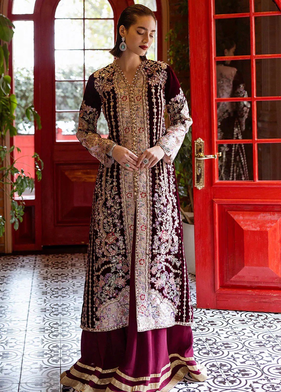 Embroidered, sequinned and hand embellished velvet right panel