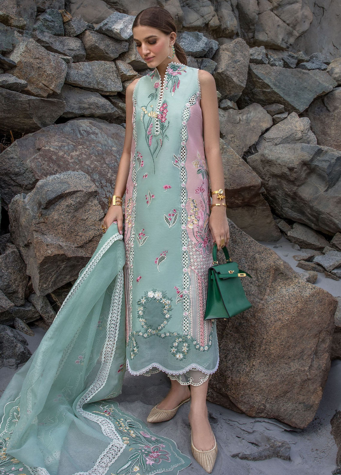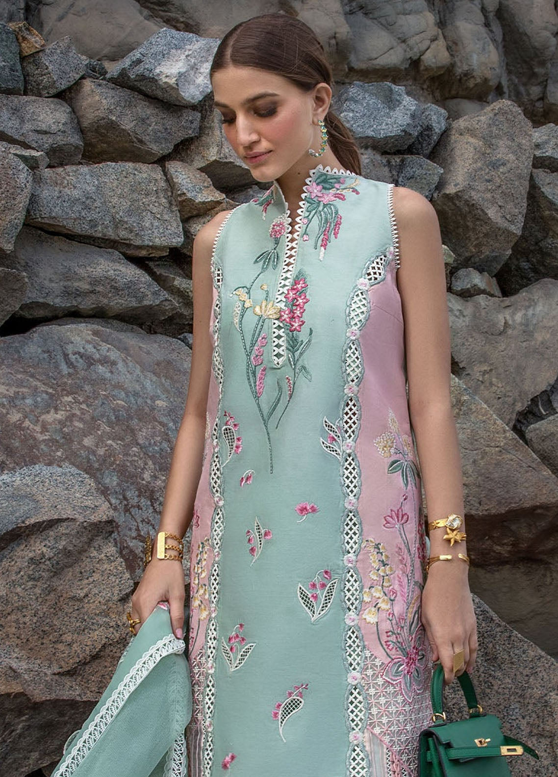 - One embroidered center panel with appliqued lace motifs and ghaara embroidery
