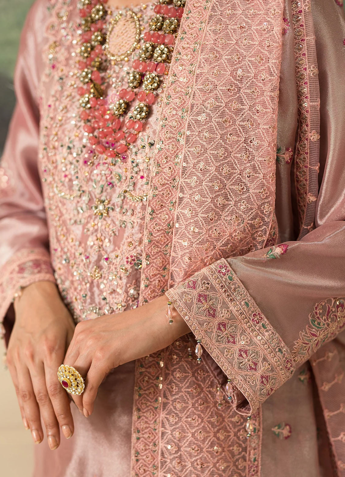 Zari Mesoury Embroidered Sleeves border.