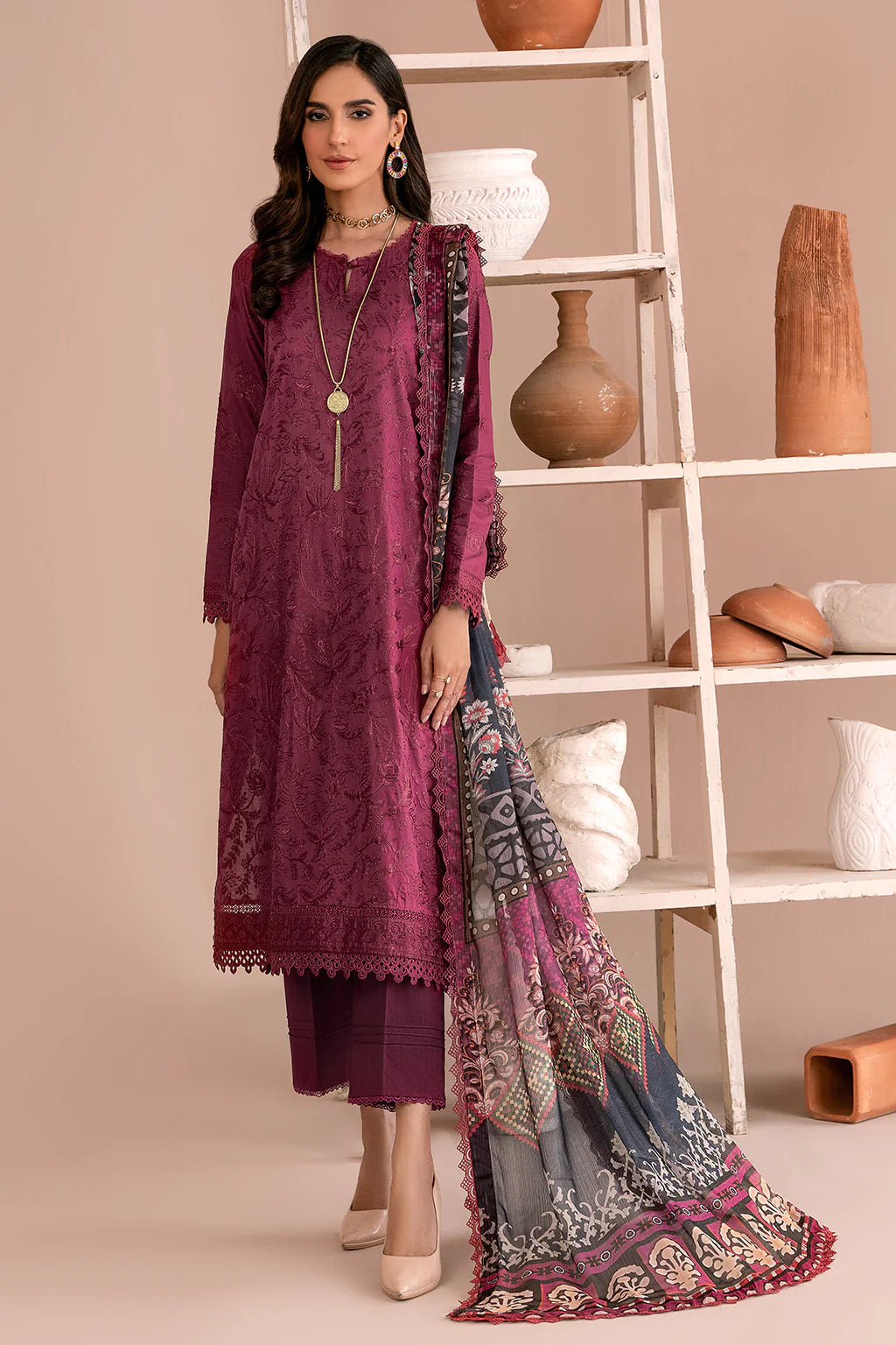A fine example of artistry on this subtle base featuring a floral symphony. This ensemble is an aesthetically pleasing design paired with a printed chiffon dupatta and tonal trouser. This attire is a best pick for all your celebrations
