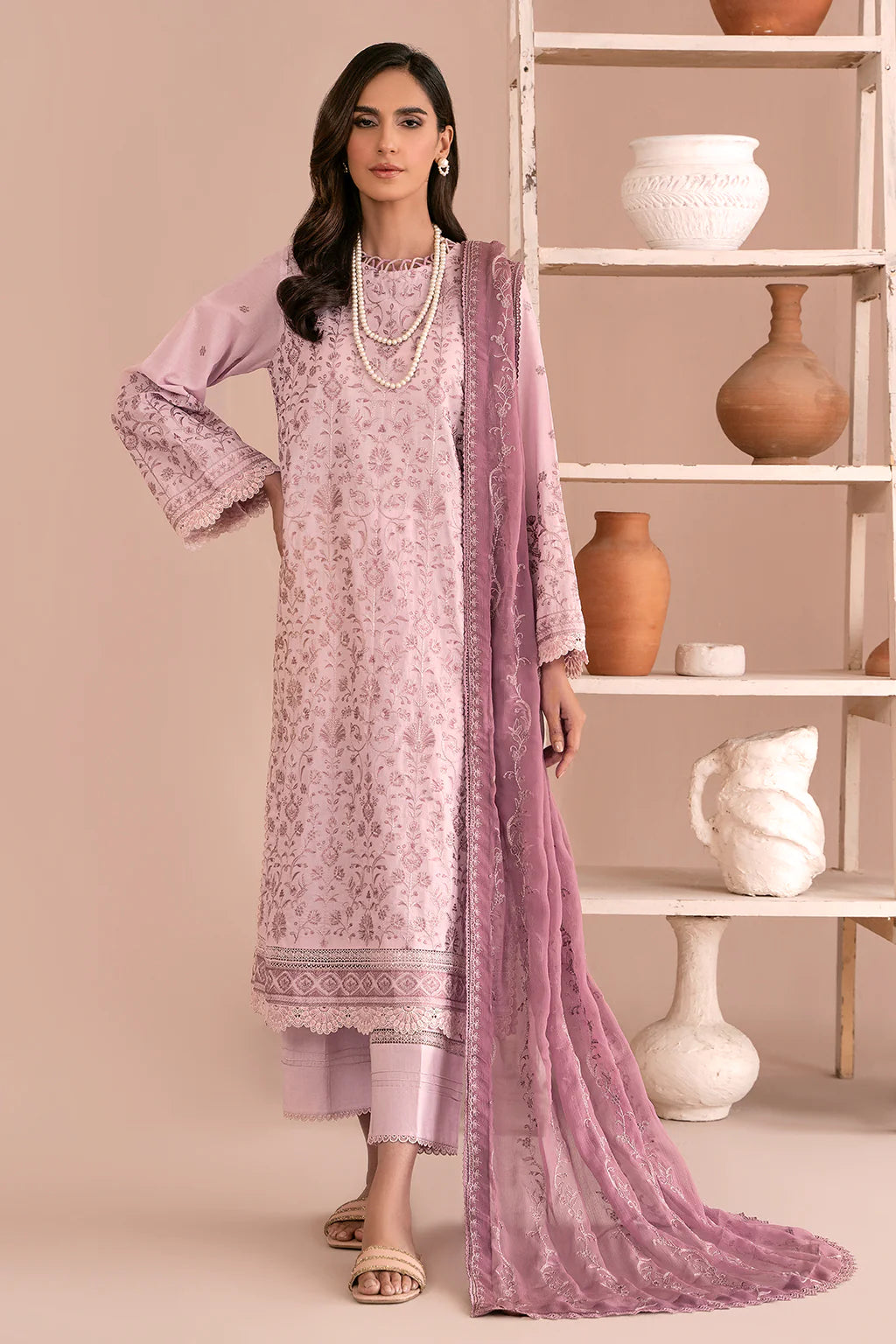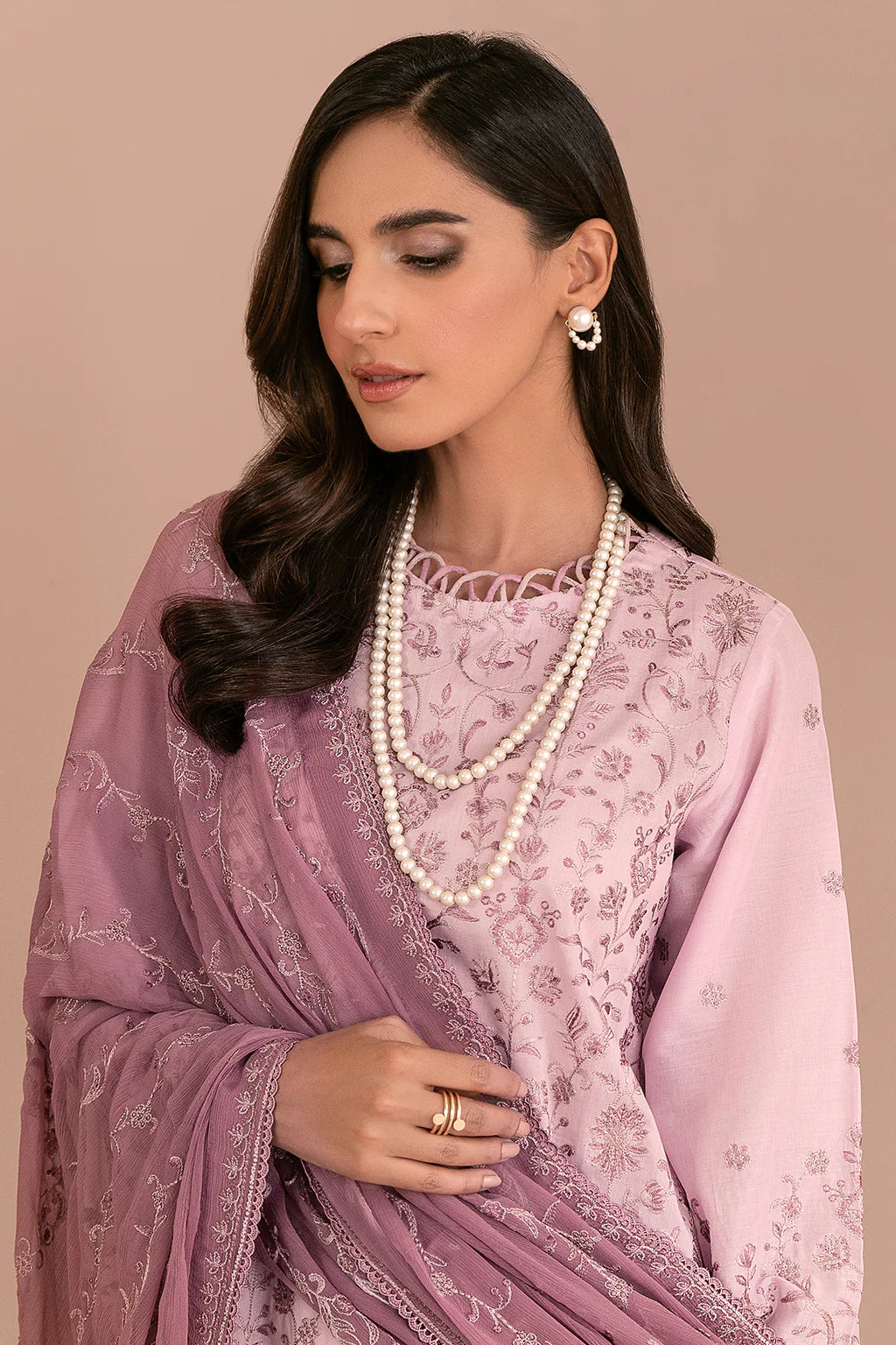 Minimalistic and artful composition is crafted onto this beautiful fabric. This ensemble is a subtle design featuring contrast threadwork.. Paired with an embroidered dupatta and tonal trouser this look is a must to your formal wardrobe.