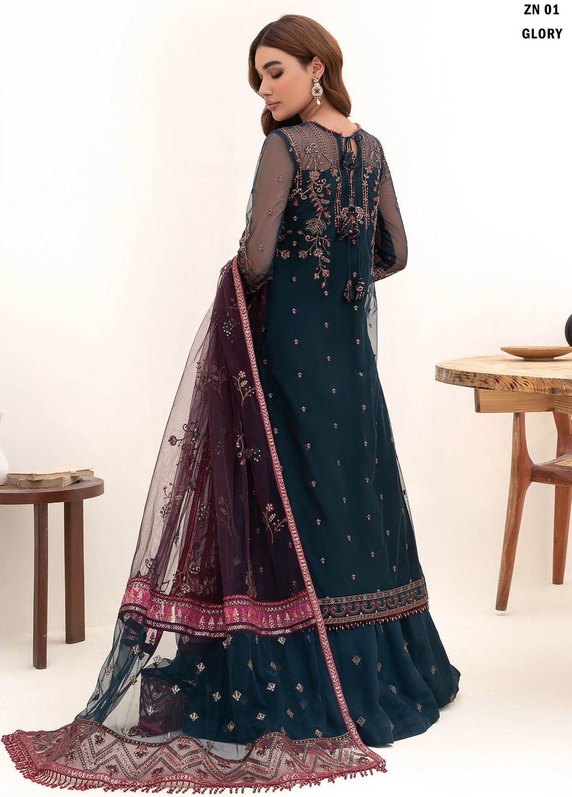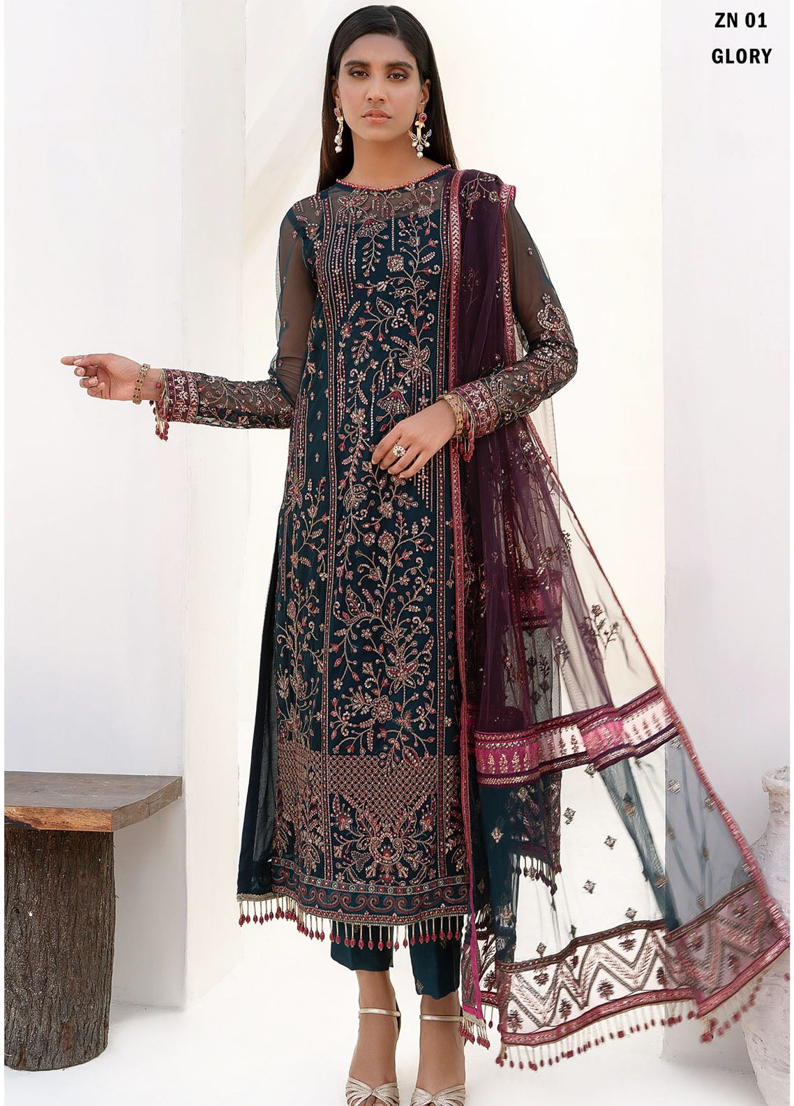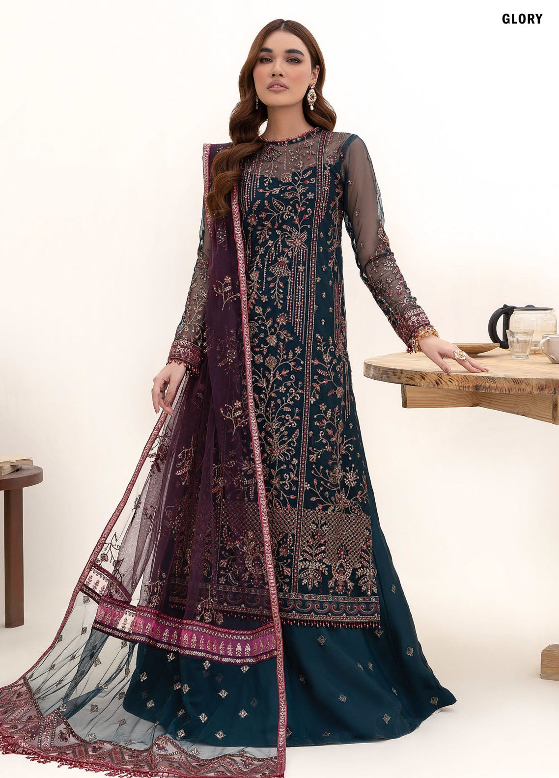 - Sleeves LaceMaroon Organza Sequins Embroidered
