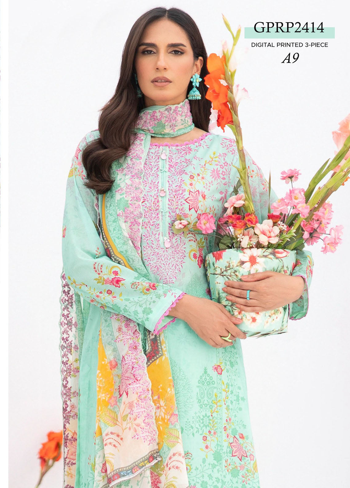 Luxury Digital Printed Lawn Embroidered Neck Front