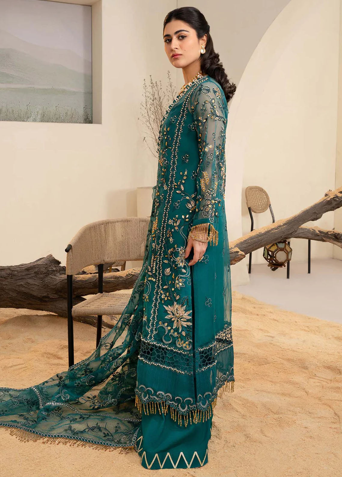- Hand Embellished Sleeves On Organza 1.32 Meter