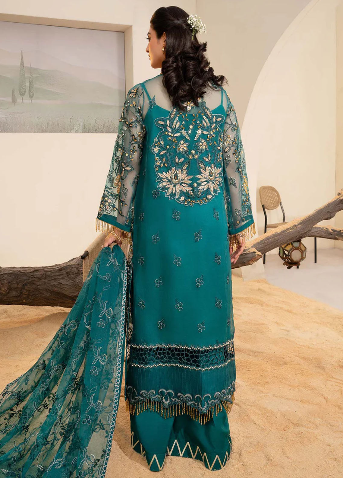 - Hand Embellished Back Motif On Organza 1 Piece