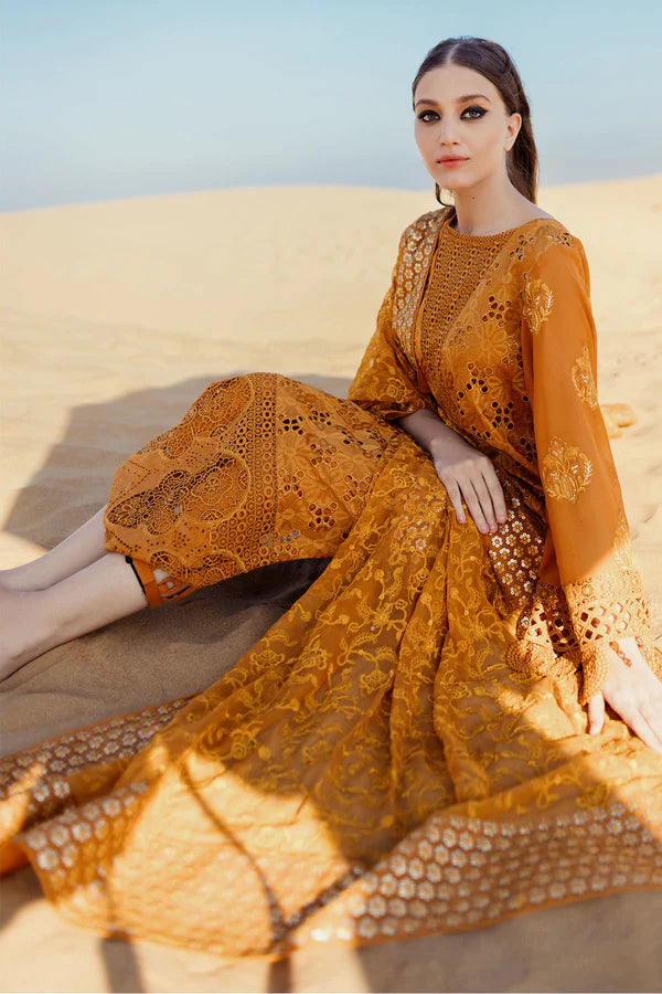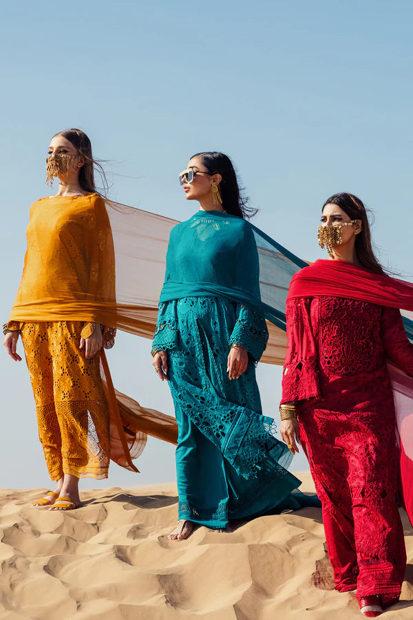 - Embroidered Chickenkari Swiss Lawn Shirt With Embroidered Lace Border