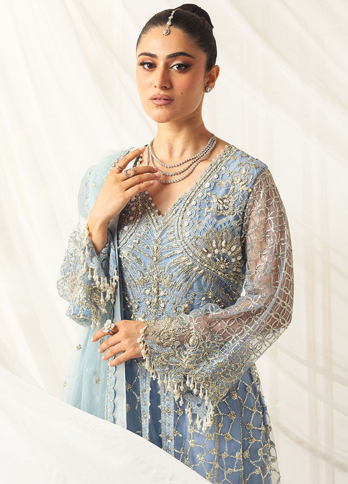Embroidered. sequinned pearl embellished front daman border (organza)