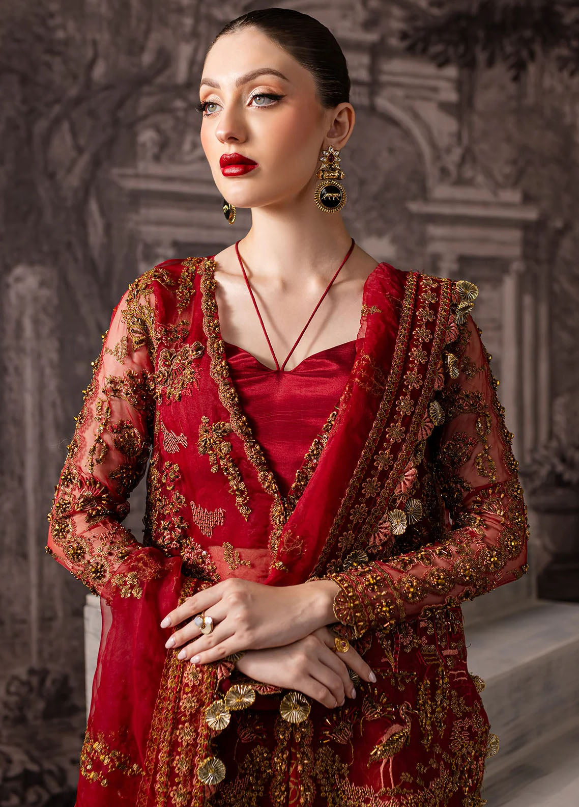 - Embroidered Dupatta On Organza - 2.5M