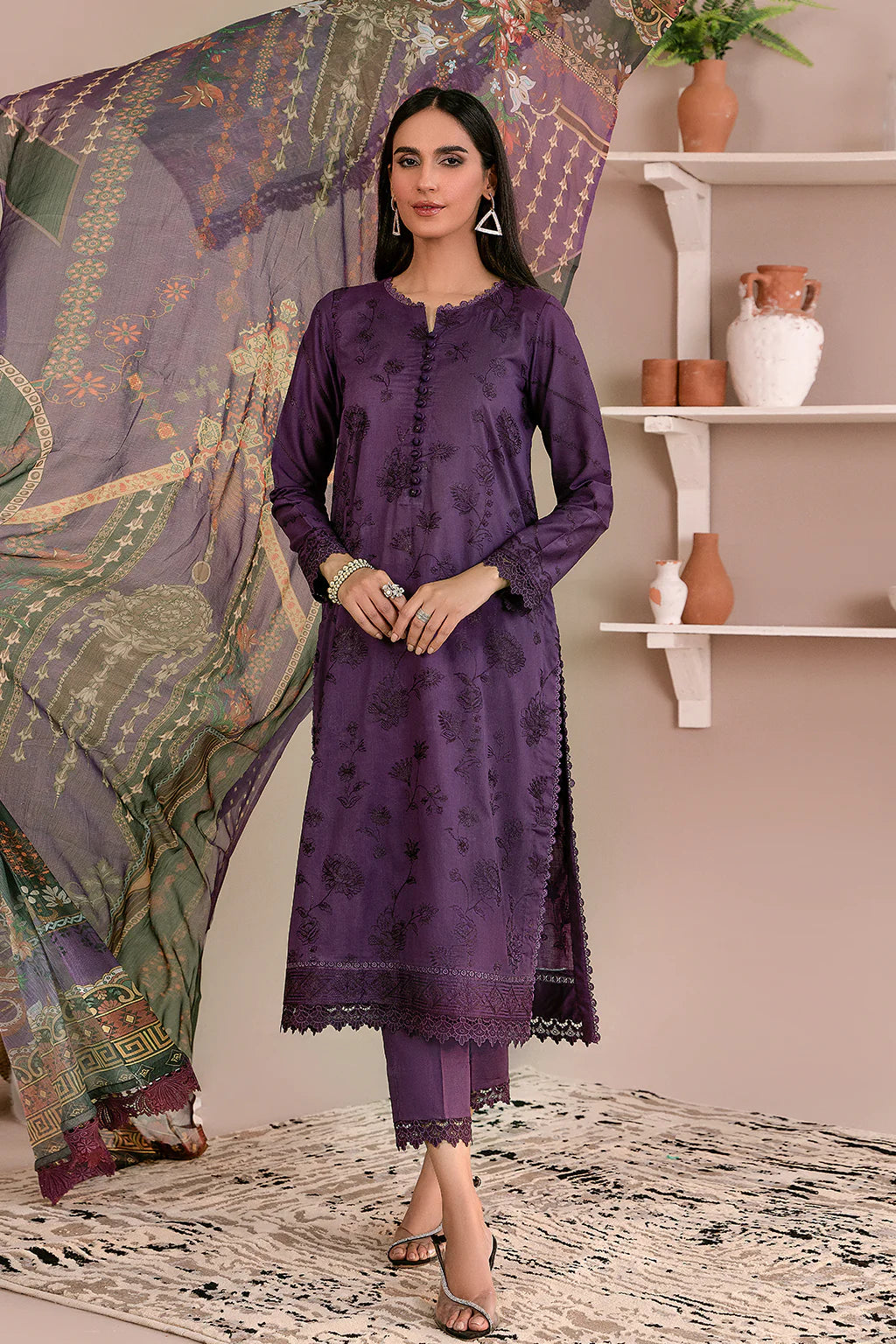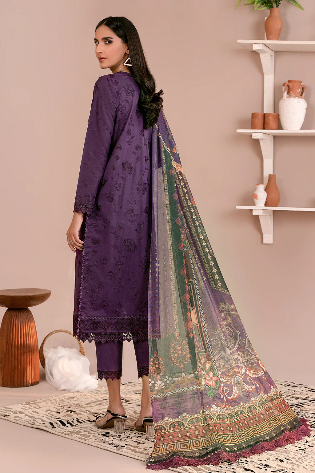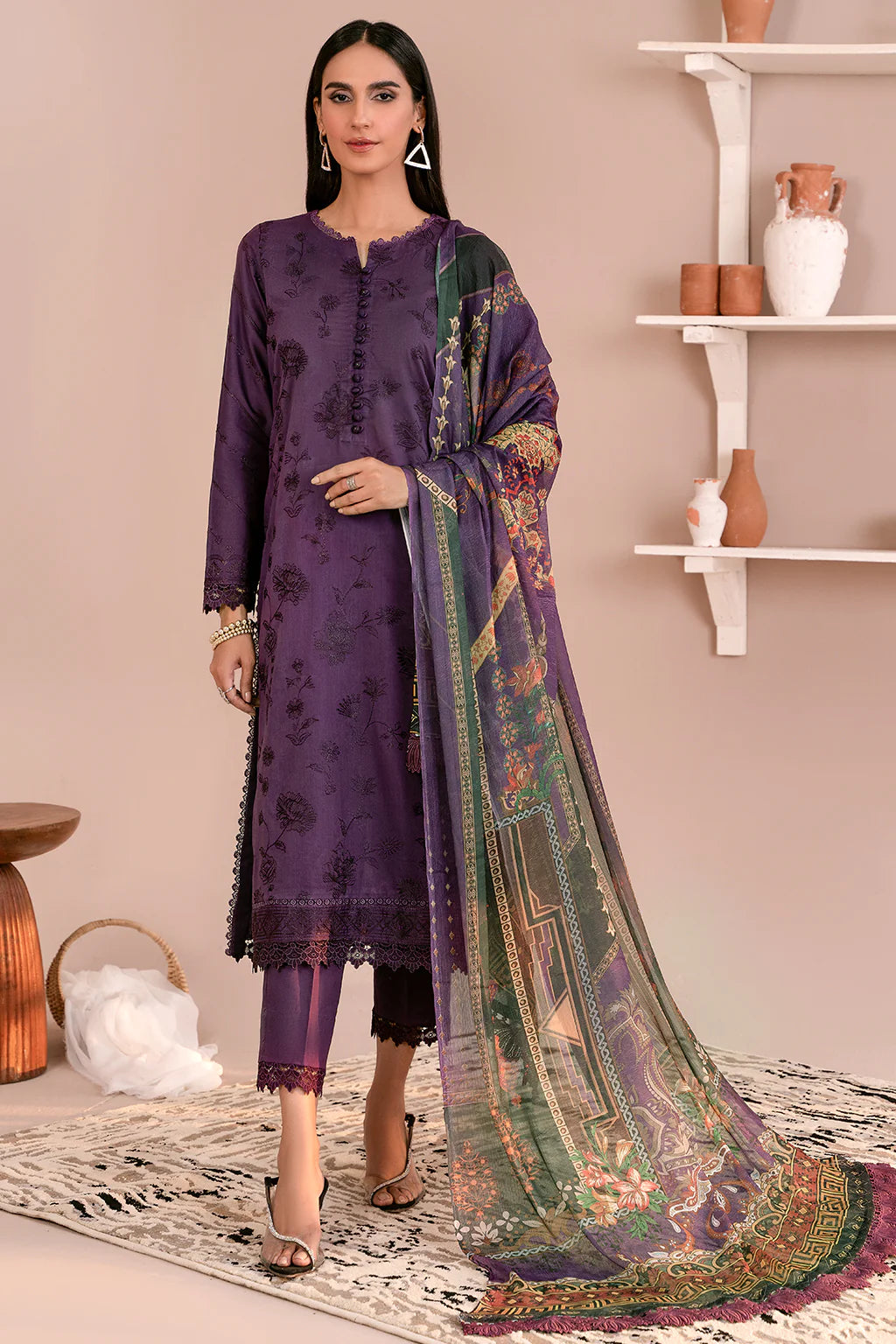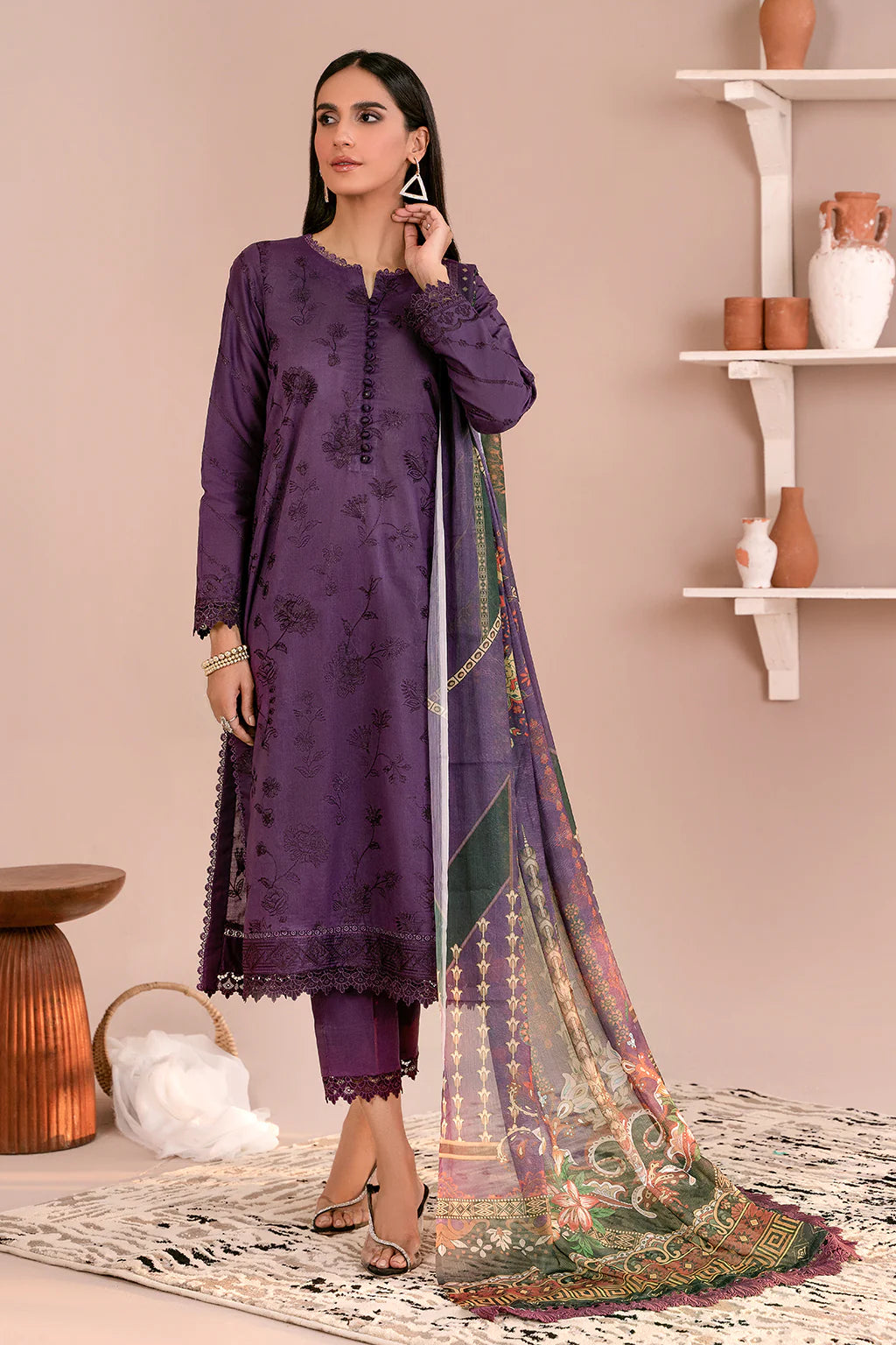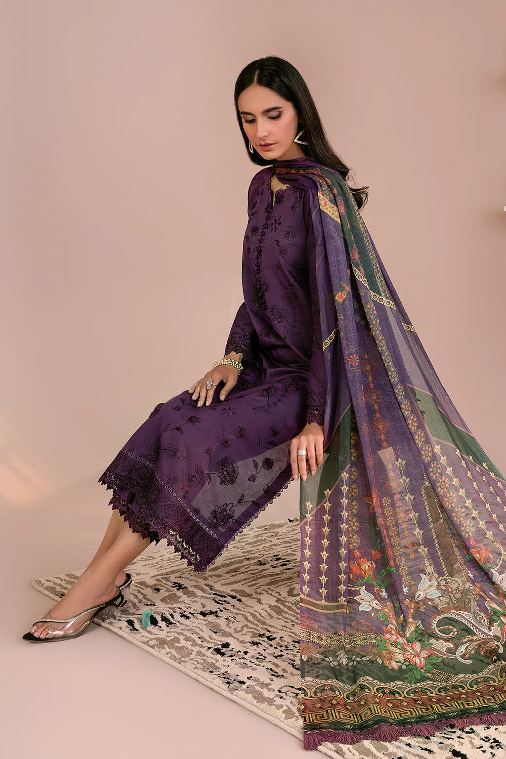 This design is luxuriously embroidered into patterns of florals with threadwork. Featuring an artsy look, this is brought to life with contrasting shades of print on chiffon dupatta and tonal trouser.