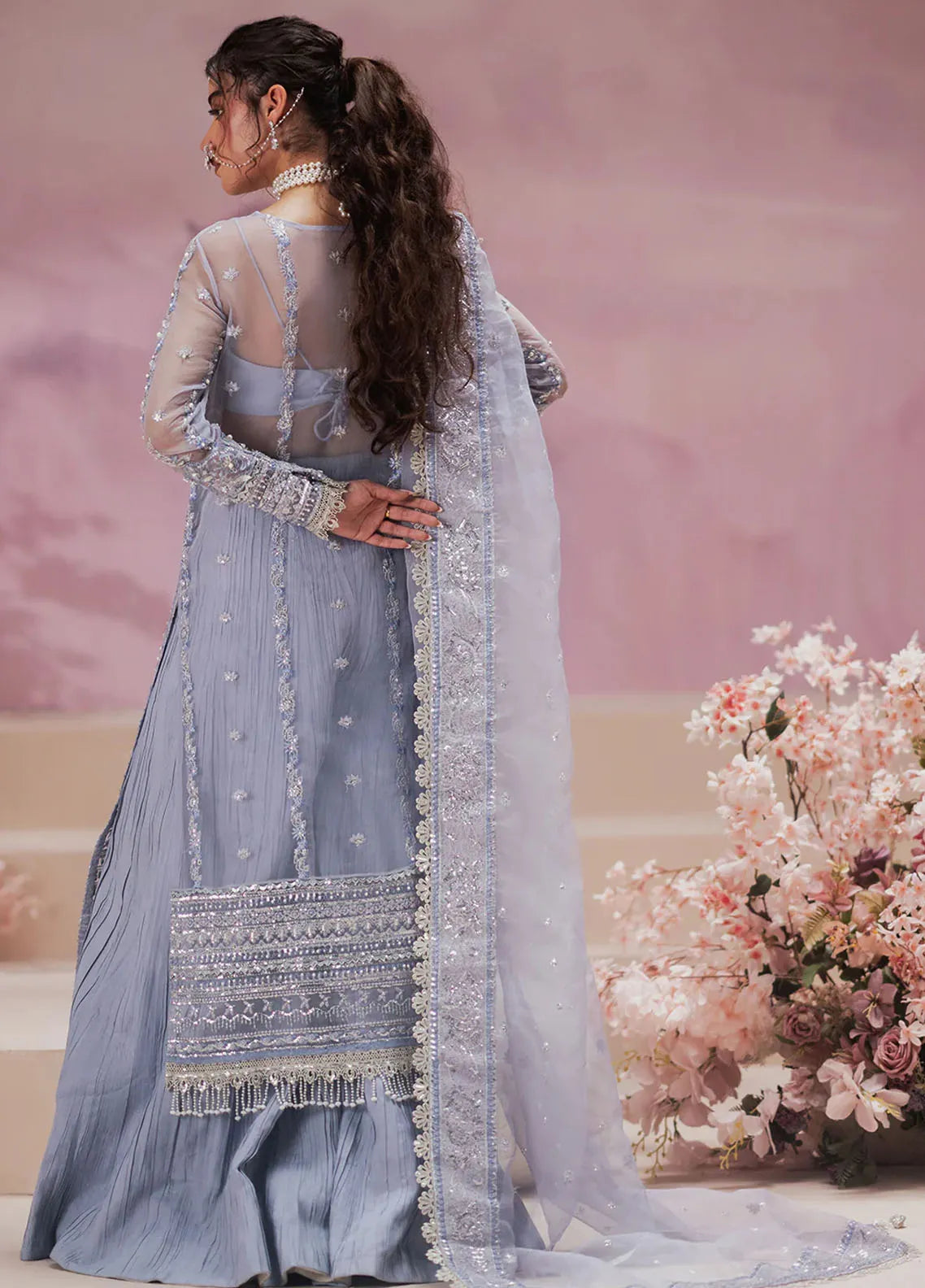 Embroidered organza front and back border embellished with ada work (2 m)