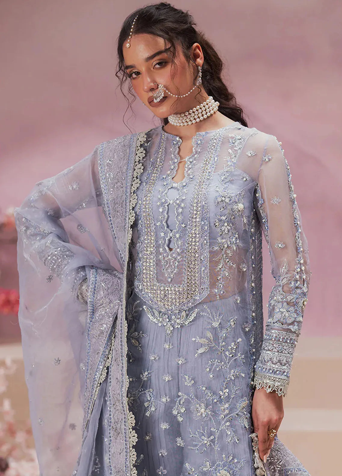 Embroidered organza duppata (2.88 yards